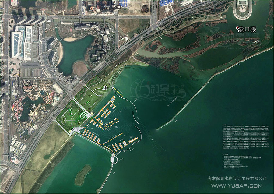 方案设计陆域区域形成四大功能定位,滨湖景观绿化、旅游码头游客集散中心、船舶配套服务区、划艇类水上体育运动拓展基地。水域区域形成七大功能定位,旅游船舶大中小型船艇的营运区和停泊区,旅游船艇、渔船停泊区
