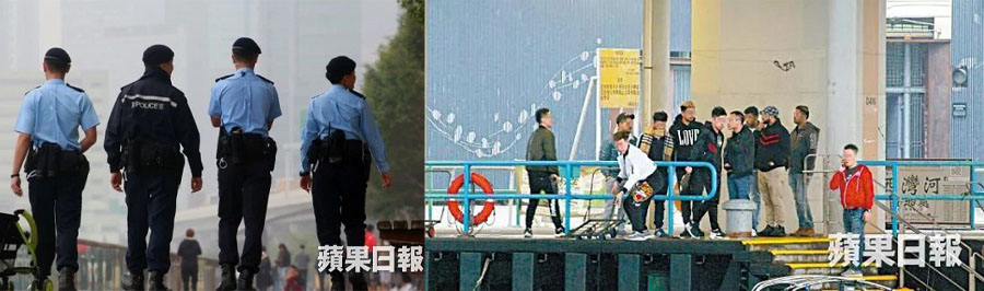 报道指,新义安的观塘派系欲成为新一代“海上霸王”,不惜工本派出大批成员每周数次轮流坐快艇晒马,并安排“南亚兵团”每天在海滨长廊一带监视。苹果记者日前在码头直击约20名黑衣“古惑仔”及南亚帮聚集,其后一名“小头目”挥一挥手,其中一批人马分乘两艘快艇,在码头对开海面高速飞驰“巡逻”,除了在对手的浮趸外兜圈,又在游艇间穿插,每当见到外籍船主乘舢舨返回目标游艇时都会怒目而视。