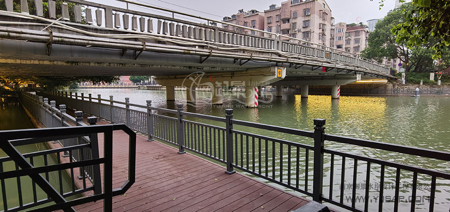 - 浙江温州金桥沿河绿道贯通与提升工程-钢箱体浮桥是由我司优化设计与建造安装施工一体化服务的工程项目,根据现场公路桥的净高和水位变化的特点而建造的低干舷钢制箱体浮桥通道,打造城区市政道路与市民绿道的人车分流,水岸休闲漫步游道无缝衔接,提升市民的休闲漫步体验与整体亲水景观效果。我司是专业承建水上浮桥栈道、水上浮动平台、水上浮动码头以及市政园林景观工程中配套的水上浮动设施、钢木结构及装饰类的设计建造安装等一体化服务。